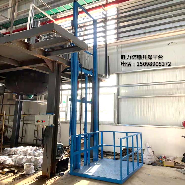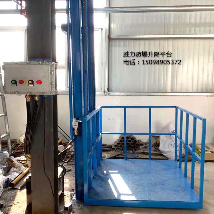 防爆升降平臺是一種快速實現(xiàn)樓層間貨物運輸?shù)暮喴纂娞?,主要結(jié)構(gòu)為液壓式,因此也被稱為防爆液壓式升降貨梯,一般防爆等級為ExdIIBT4,適用于化工車間、食品廠、藥廠等需要使用防爆環(huán)境的場所。勝力機械生產(chǎn)的防爆升降平臺載重從500公斤到100噸不等,提升高度根據(jù)客戶現(xiàn)場的實際高度進行定制。平臺的大小,是否需要轎廂,轎廂材質(zhì)等都可以根據(jù)客戶的需求定制,滿足不同客戶的使用要求。