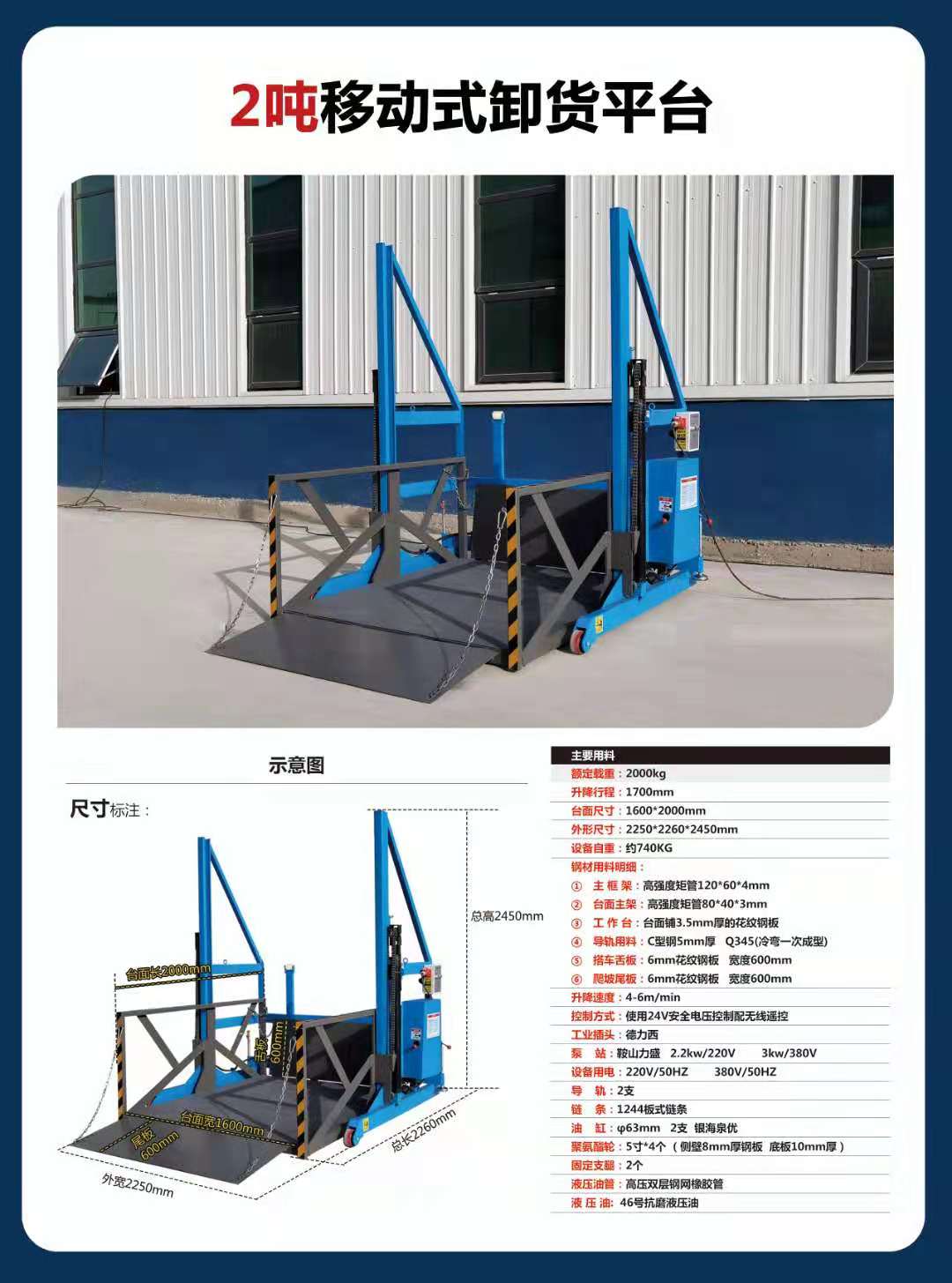移動裝卸平臺常規(guī)可以分為2噸和3噸兩種規(guī)格,升降范圍在1.7米以內,適用于大多數常規(guī)集裝箱車輛的高度。適用場所:倉庫、車站、碼頭、儲物流基地等行業(yè)??蓡稳瞬僮鳎?/span>不占用空間,移動靈活方便,大大提高裝卸作業(yè)效率。