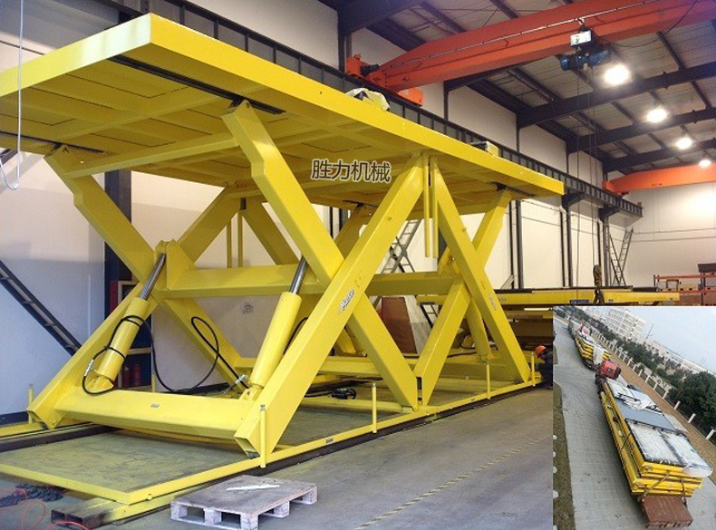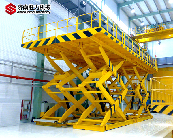 雙跨剪叉式升降平臺(tái)大多用于體積較大貨物的升降運(yùn)輸,產(chǎn)品液壓系統(tǒng)設(shè)置防墜、超載安全保護(hù)裝置,各樓層和升降臺(tái)工作臺(tái)面均可設(shè)置操作按鈕,實(shí)現(xiàn)多點(diǎn)控制。雙跨式升降平穩(wěn)、承載能力大,可承載100噸。該設(shè)備無(wú)需樓頂機(jī)房,工作時(shí)平臺(tái)直接從地面起升,到達(dá)所需高度后自動(dòng)停止,作業(yè)完畢平臺(tái)回落到與地面平齊狀態(tài),不占據(jù)地面空間,不影響通道通行。雙跨剪叉升降平臺(tái)結(jié)構(gòu)堅(jiān)固,安裝維修簡(jiǎn)單方便,是經(jīng)濟(jì)實(shí)用的低樓層間替代電梯的理想貨物輸送設(shè)備。