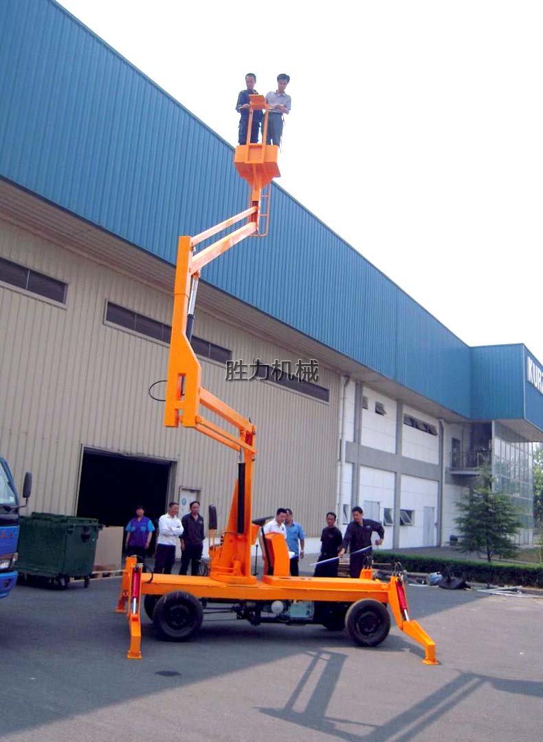移動曲臂式升降平臺是由二、三節(jié)升降臂組成的高空作業(yè)平臺,可懸伸作業(yè)、也可跨越障礙物在一處地點(diǎn)進(jìn)行多點(diǎn)作業(yè),它采用液壓撐腿,360度旋轉(zhuǎn)作業(yè),工作高度可達(dá)15米左右,特別適用于室外高空作業(yè)。移動曲臂式升降平中的運(yùn)輸方式非常簡單,工作人員可在平臺上通過方向盤直接把平臺駕駛到工作地點(diǎn)。它的行走與升降動力一般為電瓶驅(qū)動或柴油發(fā)動機(jī)兩種,為了便于操作,柴油發(fā)動機(jī)采用電啟動方式。該產(chǎn)品被廣泛應(yīng)用于園林、電力、市政、攝影、路燈、廣告、交通、大型工礦企業(yè)、車站、機(jī)場、碼頭等行業(yè)的安裝維修及登高作業(yè)。