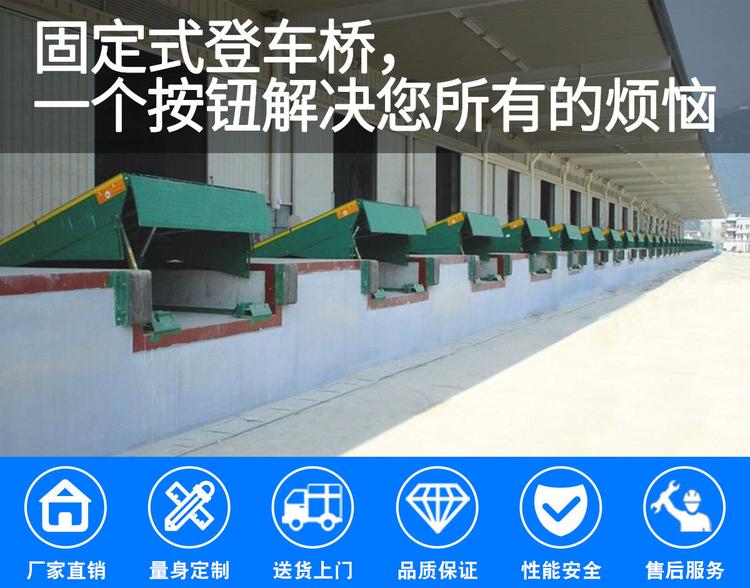 固定式登車(chē)橋是與倉(cāng)儲(chǔ)月臺(tái)一起的裝卸輔助設(shè)備,本設(shè)備與月臺(tái)一體,可根據(jù)貨車(chē)車(chē)廂不同高度調(diào)節(jié)即可調(diào)高也可調(diào)低,它的高度調(diào)節(jié)功能使貨車(chē)與庫(kù)房的貨臺(tái)之間架起一座橋梁,方便叉車(chē)駛?cè)胲?chē)廂內(nèi)部進(jìn)行貨物的批量裝卸。設(shè)備采用進(jìn)口液壓泵站,兩側(cè)設(shè)有防軋裙板,工作更加安全,僅需單人作業(yè),即可實(shí)現(xiàn)貨物的快速裝卸。固定登車(chē)橋可使企業(yè)減少大量勞力,提高工作效率,獲取更大經(jīng)濟(jì)效益。固定登車(chē)橋被廣泛應(yīng)用在裝卸車(chē)頻繁、車(chē)型不一的大型企業(yè)、倉(cāng)庫(kù)、車(chē)站、碼頭、倉(cāng)儲(chǔ)物流基地、郵政運(yùn)輸、物流配送等。